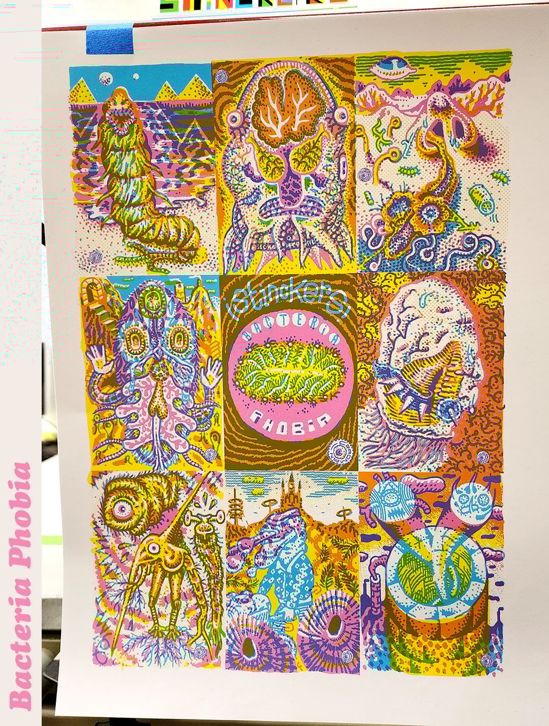 Bacteria Phobia 1-up, 9.5 x 13.5" 3-color screenprint on vinyl.